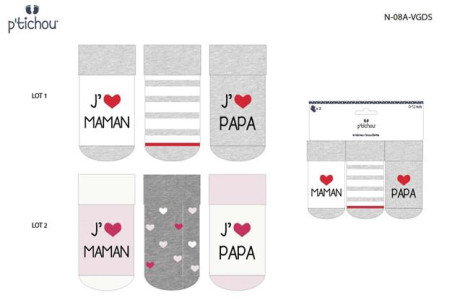 Lot de 3 Paires de Chaussettes BEBES J'AIME MAMAN J'AIME PAPA 43891587