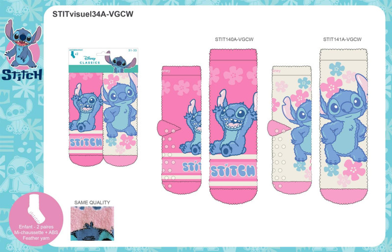 Lot de 2 paires de Chaussettes Antidérapantes Enfants STITCH 87891847